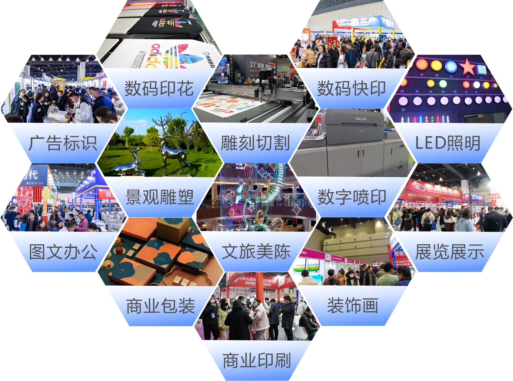 展會(huì)展品范圍涵蓋了廣告標(biāo)識(shí)、LED照明、噴印、印花、雕刻切割、圖文辦公、商業(yè)印刷與包裝、數(shù)碼快印、影像、裝飾畫與框業(yè),為眾多品牌進(jìn)入河南及中北部市場(chǎng)提供了機(jī)遇,更為河南及中北部市場(chǎng)帶來(lái)了全球采購(gòu)的絕佳平臺(tái)。